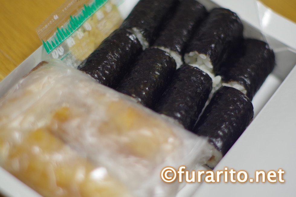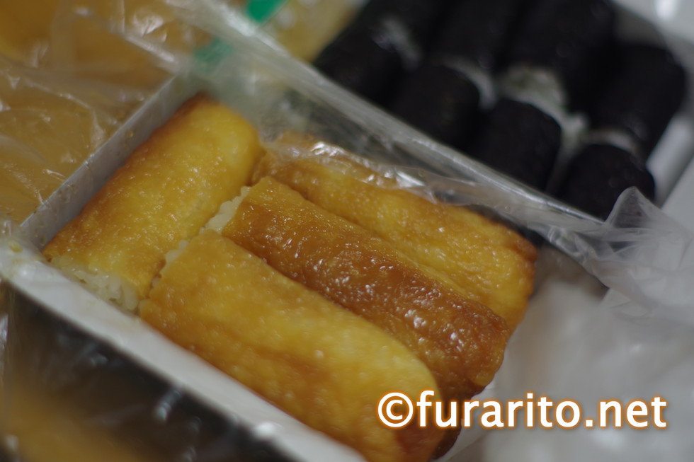 て前がお稲荷さん、ビニールに守られていますね。奥がかんぴょう巻き