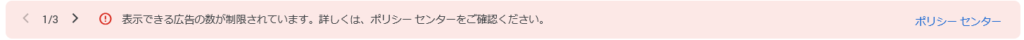 「表示できる広告の数が制限されています。詳しくは、ポリシー センターをご確認ください。」