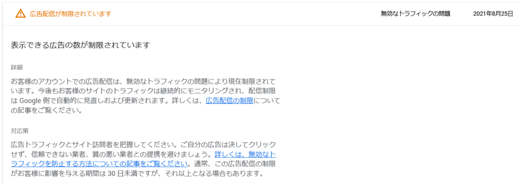 【2か月過ぎに解消!?】無効なトラフィックのせいで、Google AdSenceの広告が表示されていなかった件