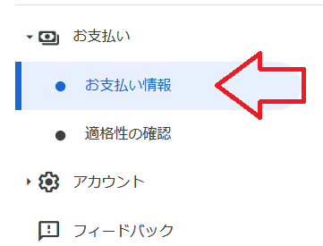 「お支払い」→「お支払い情報」をクリック