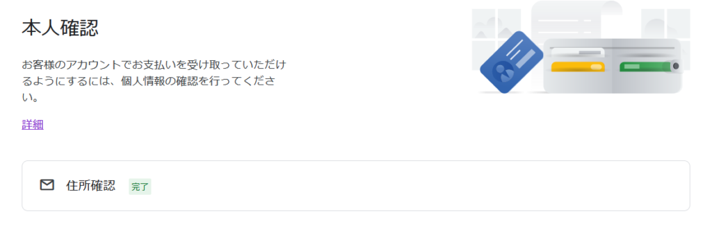 「住所確認」欄が「完了」となりましたので、これでOKですね!