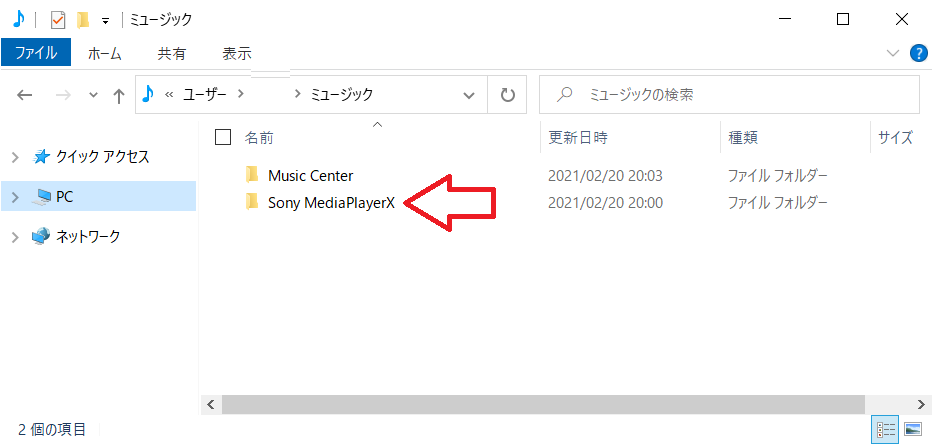 これを②のWindows10のパソコンの任意の場所(まぁ同じでいいと思います)においてから、【Music Center for PC】をインストールし、起動すると、データ読み込みの画面がでますので、そこでこのフォルダを選択すると、ちゃんとデータを取り込むことができました。